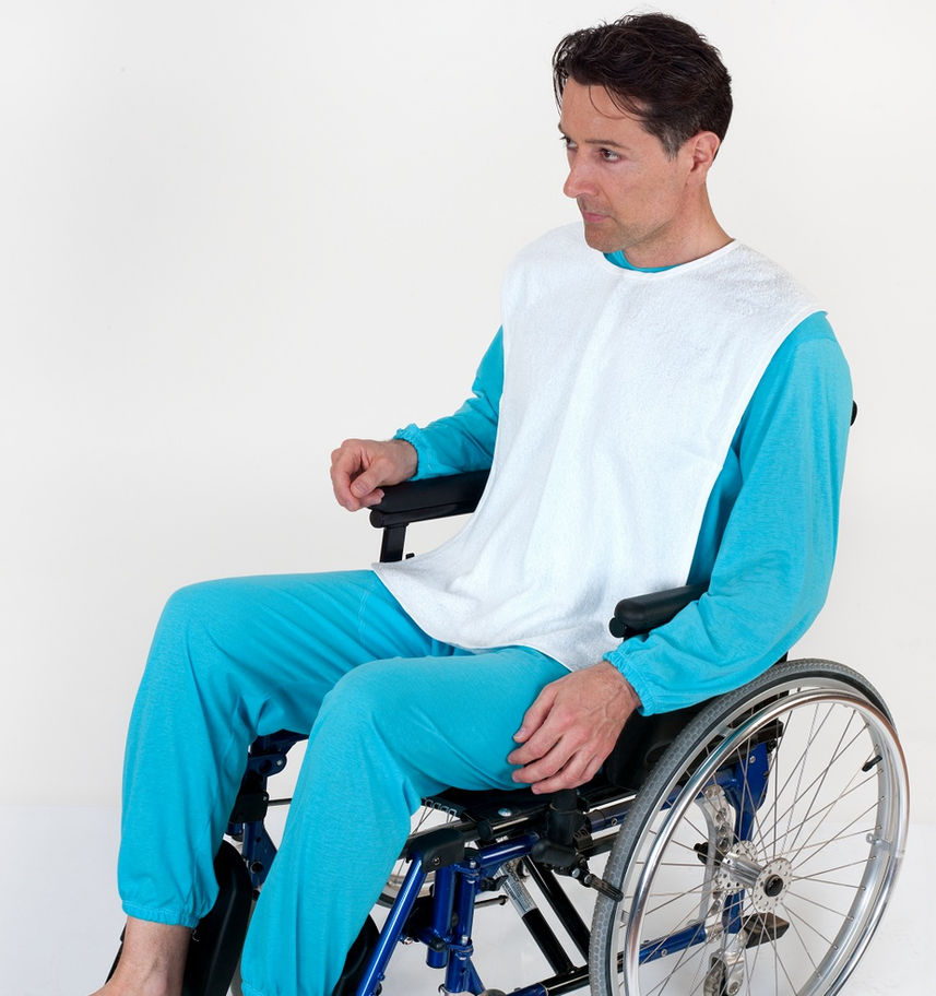 Bavaglione per adulti in Spugna di cotone. Tessuto morbido. Pratico nei lavaggi. Tessuto di alta qualità.